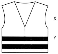 The X represents the class of conspicuity. It will show a number from one to three that indicates the minimum areas of materials that make the wearer stand out. Depending on the risks your employees face, you’ll need a lower (1) or higher (3) amount of conspicuity.